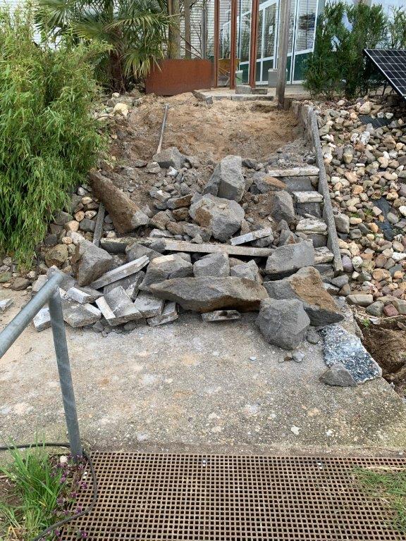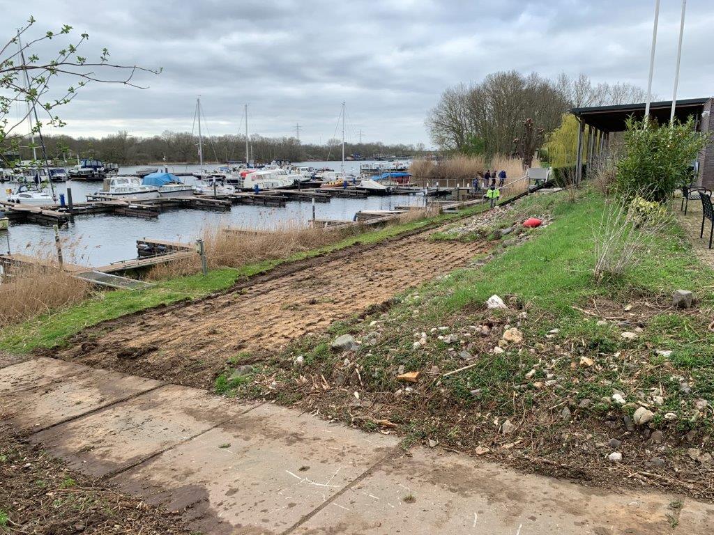 De op de Jaarvergadering besloten verbeteringen van toegangspaden, terras en verdere terrein aanpassingen zijn begonnen.