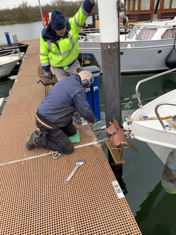 Leden van de steigergroep hebben de bevestigingen van de steigerplaten en kikkers nagelopen en vastgedraaid/aangepast waar nodig.