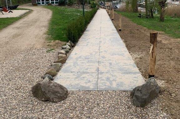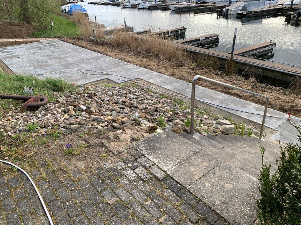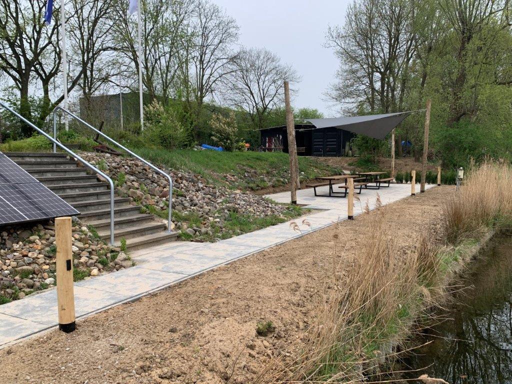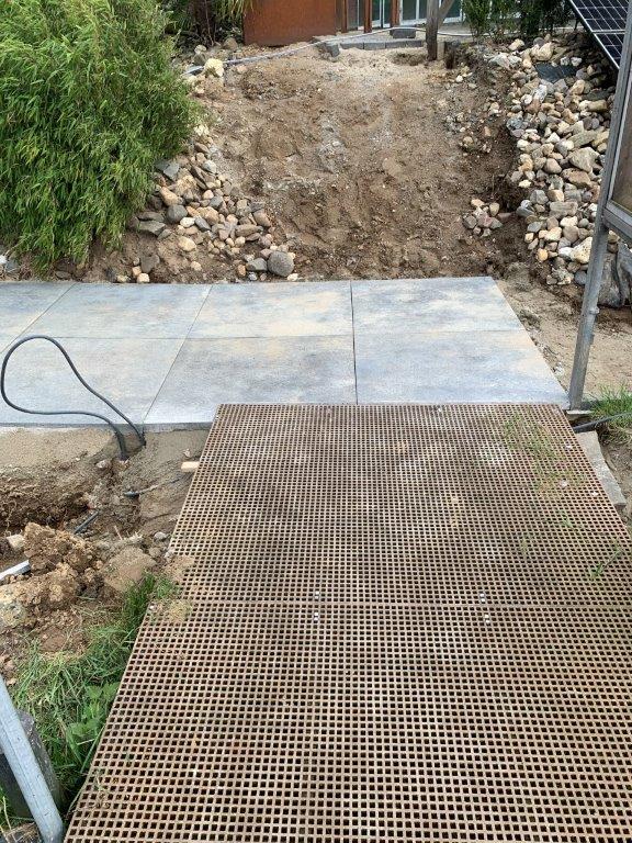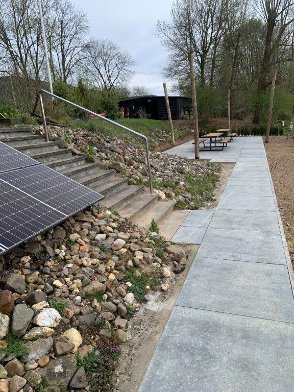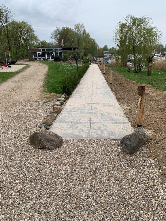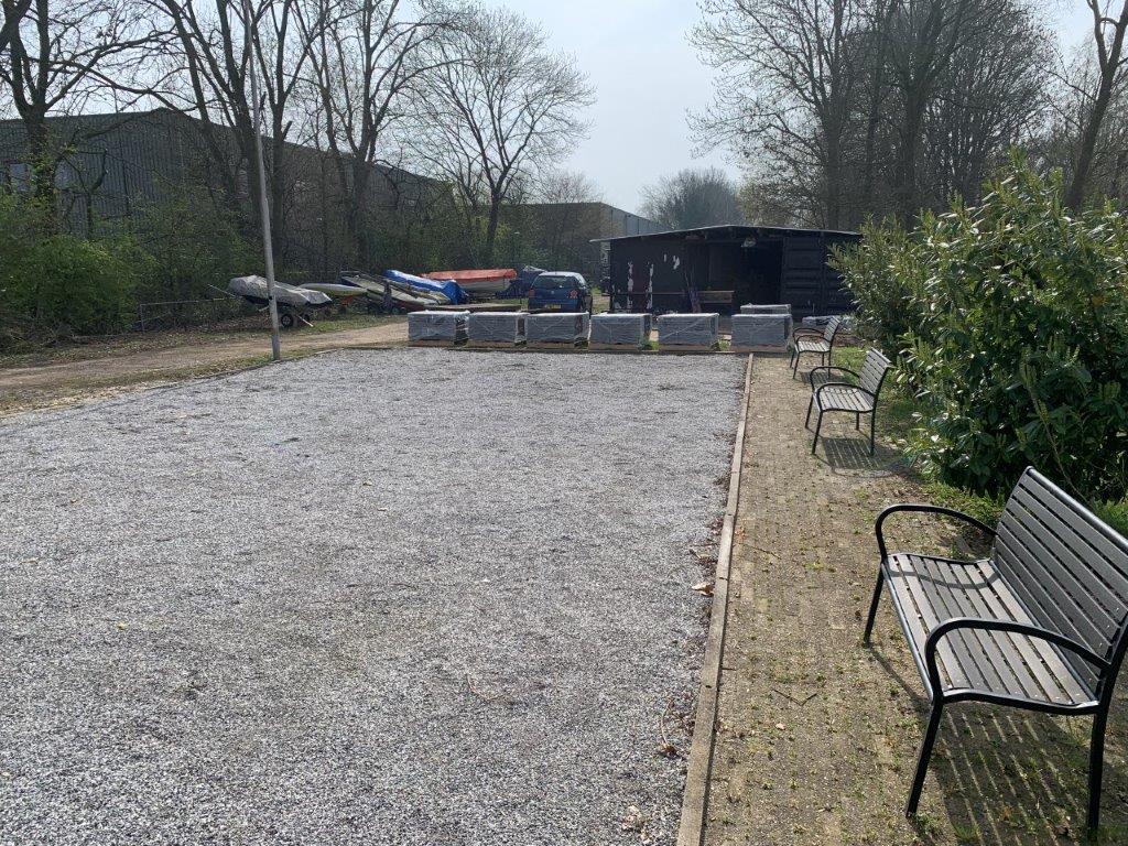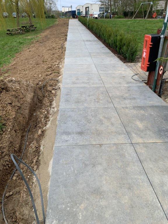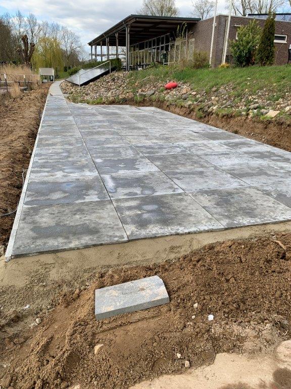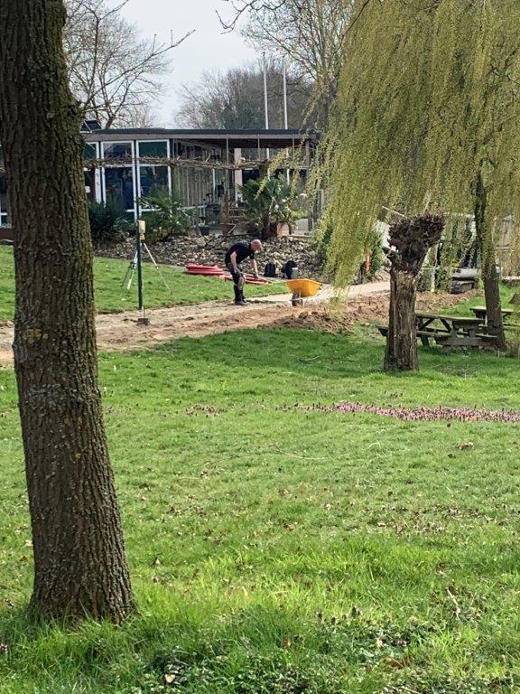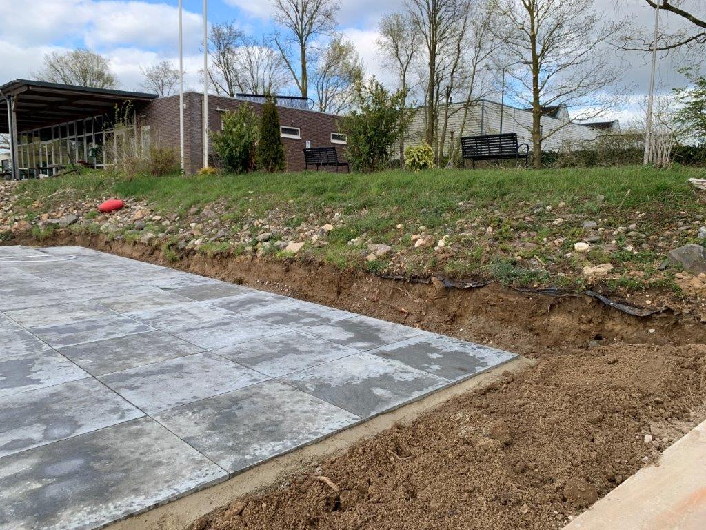 De op de Jaarvergadering besloten verbeteringen van toegangspaden, terras en verdere terrein aanpassingen zijn begonnen.